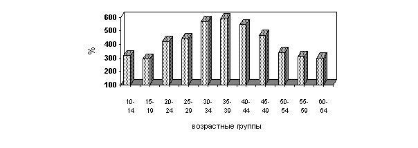В 90-е годы в Мурманской области наблюдается ранее не отмеченный ни в мире, ни в стране существенный разрыв СППЖ у мужчин и женщин. В 1994 году СППЖ мужчин была на 12.4 года ниже, чем у женщин, в 1995 году - на 11.9 , в 1996 году - на 12.5 лет.